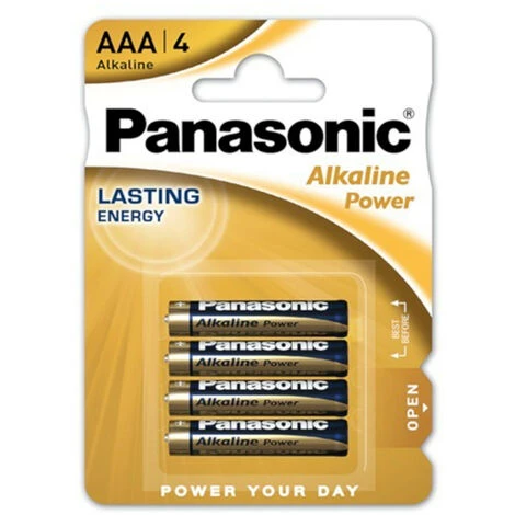 Blister 4 Piles PANASONIC type AAA/LR03 avec borne Standard et 1.5 V de tension spécialement indiquées pour les appareils électroniques portables. Leur capacité est de 1000mAh. Elles possèdent une technologie de pointe et offrent les meilleures performances. Grâce à leur longue durée de vie et date de péremption (4 ans ou plus), vous pouvez faire de grandes économies d’argent et avoir toujours à disposition des piles pour vos télécommandes, jouets et autres produits technologiques.