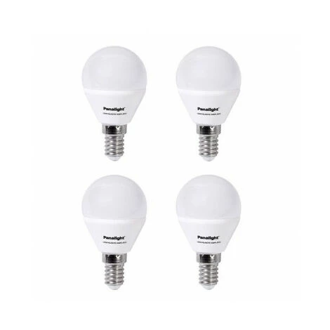 Pack de 4 lampes LED sphériques frost E14 de 4 W, CRI80, angle de lumière 270º. Température de couleur : 4500K.