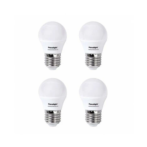 Pack de 4 lampes LED sphériques frost E27 de 4 W, CRI80, angle de lumière 270º. Température de couleur : 2700K.