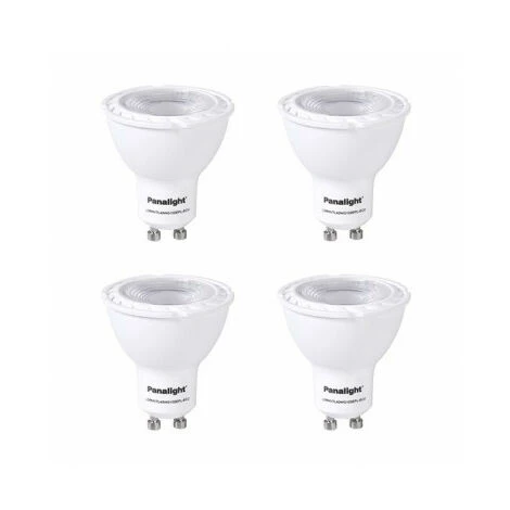 Pack de 4 lampes LED dichroïques GU10 5 W, CRI80, angle de lumière 38º. Température de couleur : 4000K.