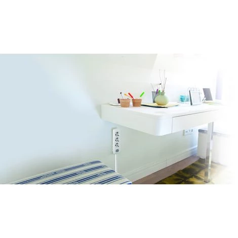 Multiprise NF pour 6 prises 2P+T. Avec sécurité enfant, bouton rétro-éclairé on/off, et support de fixation.