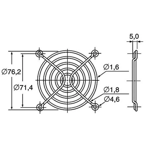 Les dimensions indiquées de la grille de protection correspondent aux mesures des ventilateurs adaptés. Illustration similar.
