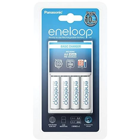 Tension : 100-240VArrêt automatique par minuterie : 13hTemps de charge : Environ 10hIndicateur LED de chargementPossibilité de recharger des piles LR06 et LR03 (AA et AAA)Charge par 2 ou par 4Dimensions du chargeur : 6,6 x 10,8 x 7cmPoids : 100gInclus : 4 piles AA LR6 pré-chargéesType : ChargeurmAh : 1900Sous-marque : Eneloop