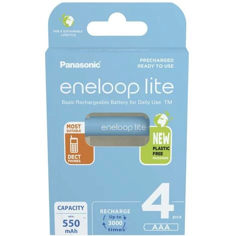 Les piles eneloop Lite sont parfaites pour les appareils ne consommant que peu d’énergie (téléphone sans fil ou télécommande par exemple). La pile peut être utilisée immédiatement. Elle a une puissance élevée et une grande capacité de stockage sans perte d’énergie. Elle peut être rechargée jusqu’à 3000 fois, est avantageuse à l’achat et préserve l’environnement.