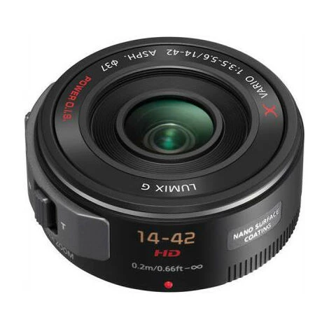 Mit dem Lumix G X Vario PZ 14-42mm/F3,5-5,6 Asph./Power O.I.S. bietet Panasonic als erster (Stand 26. August 2011) Hersteller ein kleines, leichtes Hochleistungs-Objektiv mit Motor-Zoom im praktischen, flachen „Pancake“-Format an. Sein motorischer Zoomantrieb erlaubt eine gleichmäßige Brennweitenveränderung, wie sie besonders bei Videoaufnahmen wichtig ist. In Verbindung mit seinem praxisgerechten Brennweitenbereich entsprechend 28-84 mm KB und dem leisen Autofokus empfiehlt es sich so als echtes Allround-Standard-Zoom.