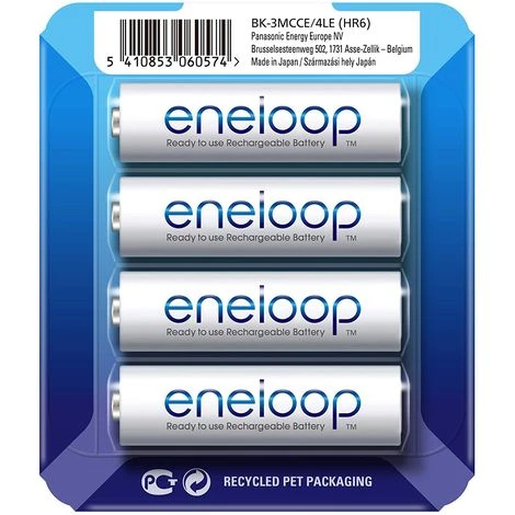 Les piles eneloop sont déjà chargées au courant solaire et peuvent donc être utilisées immédiatement comme une batterie normale. L’emballage est en même temps une boîte de rangement pratiqueRechargeables jusqu’à 2100 fois – respectueux de l’environnement et de votre porte-monnaie.Les piles eneloop ont une très faible autodécharge et sont toujours prêtes à l’emploi. Même après 10 ans de stockage eneloop possède jusqu’à 70 % de charge initiale.Les piles eneloop sont universelles, écologiques et peuvent être remplacées par tous les appareils des batteries ou piles traditionnelles. Vous pouvez le charger avec des chargeurs NiMH courants.Contenu de la livraison : 1 x lot de 4 piles AA eneloop avec boîte de rangement Ni-MH, min. 1900 mAh, 1,2 V.Type : AA / LR6mAh : 1900Sous-marque : Eneloop